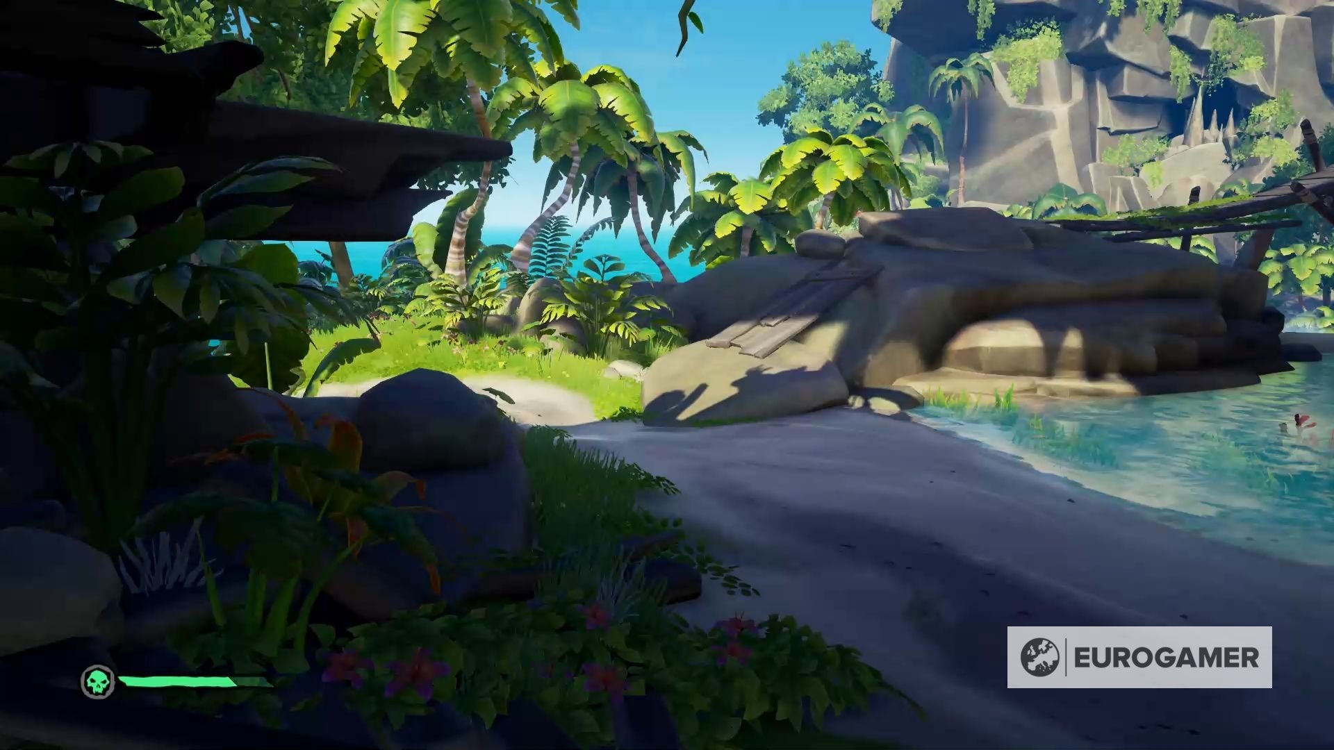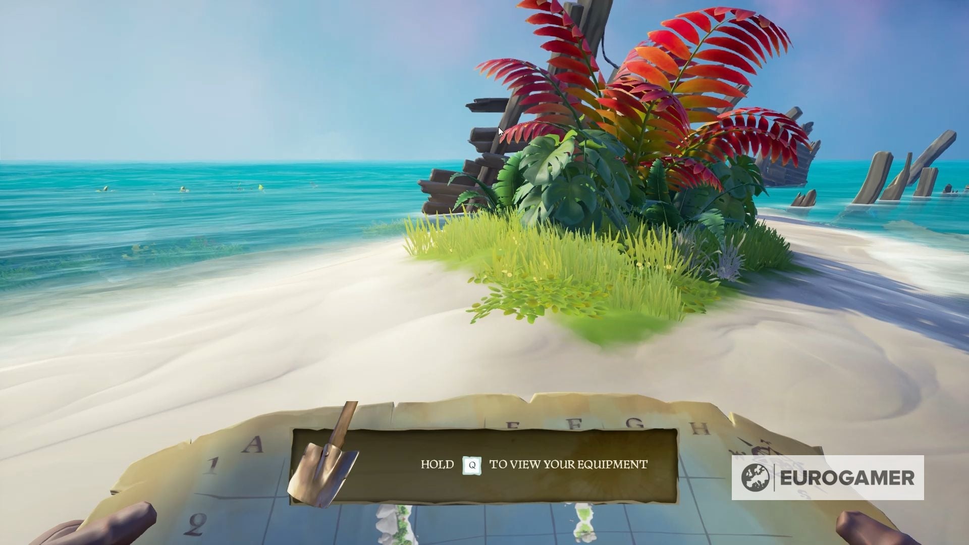 Adjacent, follow the curved beach out towards the ruined ship at its end and stop when you attain the plant with red leaves - it'due south hither that yous'll find the buried treasure.