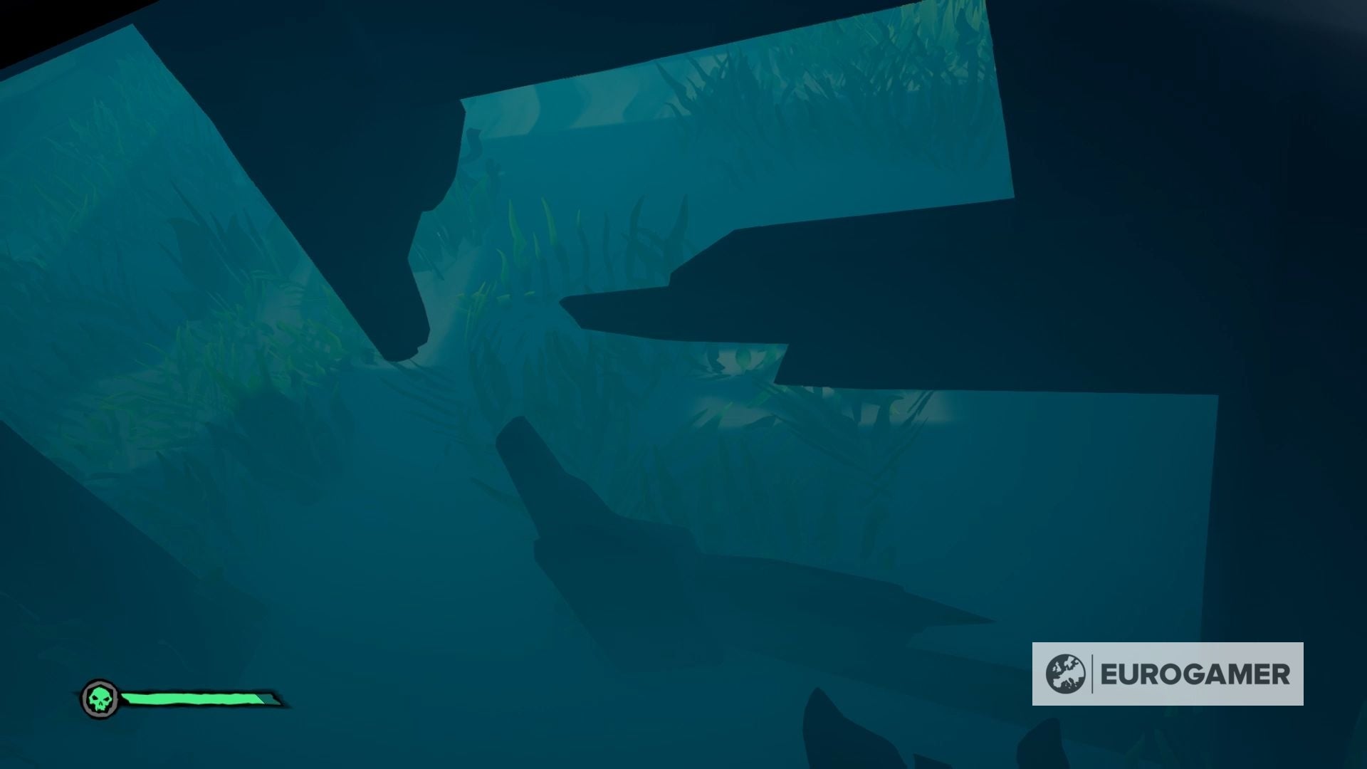 Don't let your guard down as your journey though. At that place volition be a shark that y'all must avoid and, at some signal, you lot'll encounter a skeleton ship.