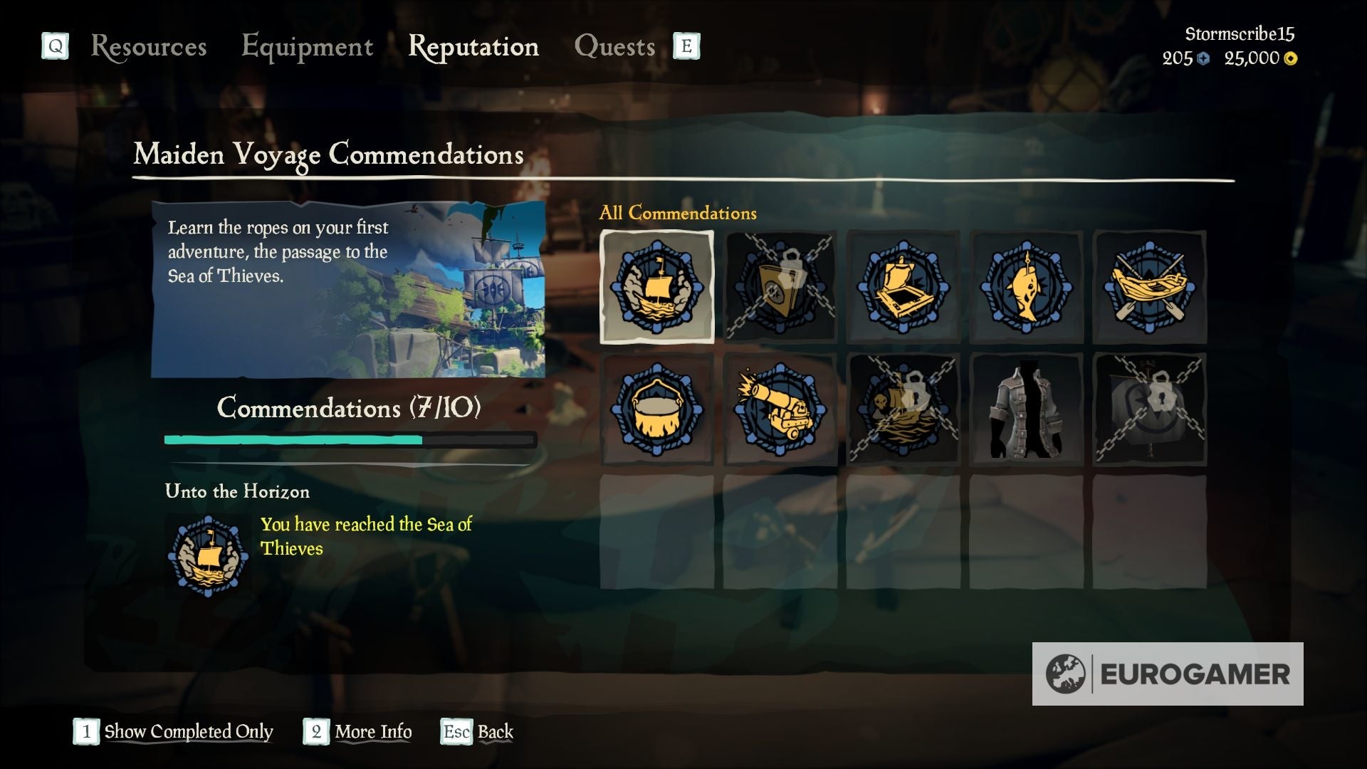 There are four other commendations for you to complete in Maiden Voyage, the tutorial for Bounding main of Thieves, and completing these commendations, along with the ones outlined higher up, will unlock the Magpie's Fortune Sails for your ship.